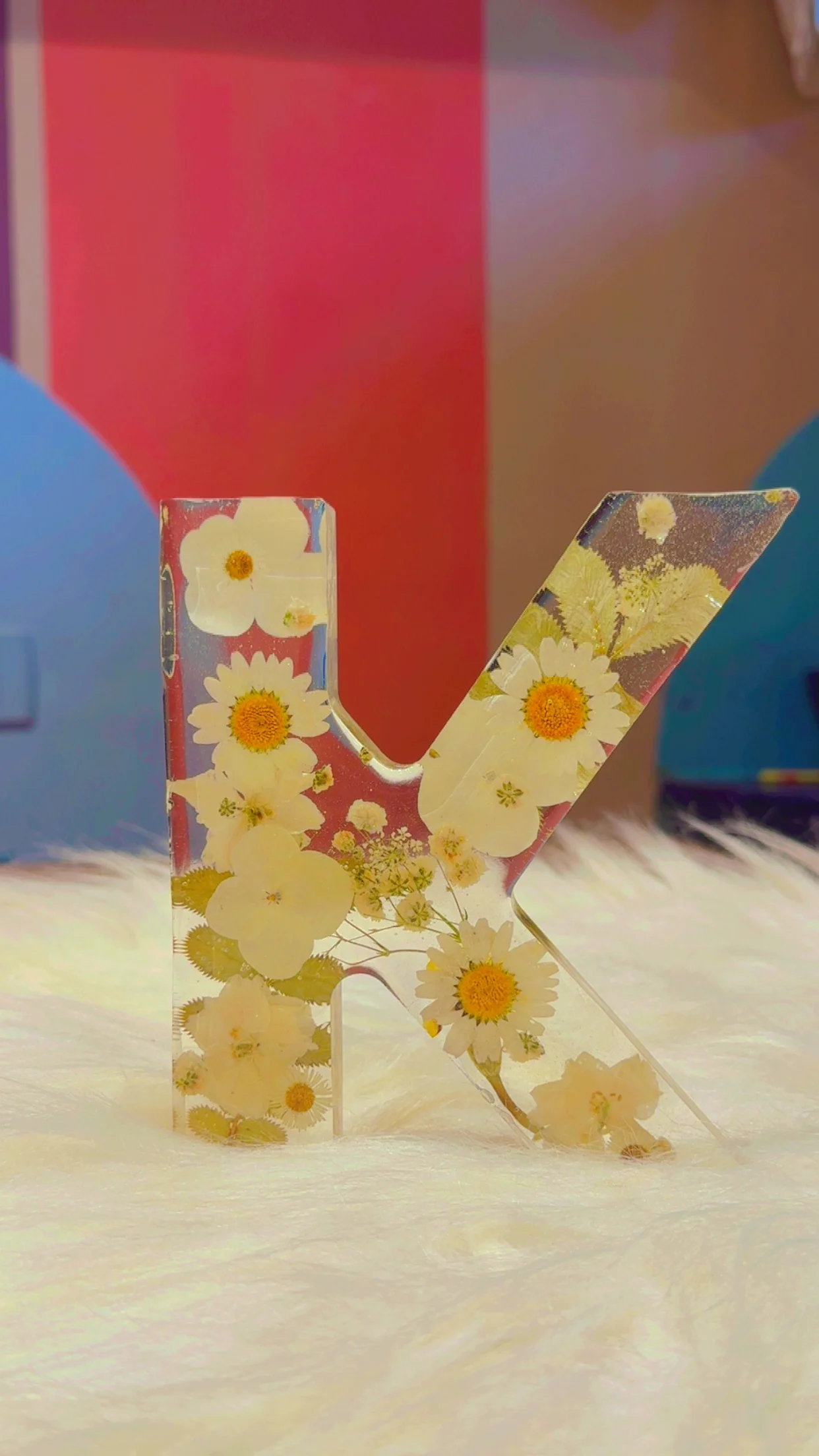 Dried Flower Resin Letter K Stand is a breathtaking handcrafted piece that brings the gentle beauty of a summer garden into your space forever.