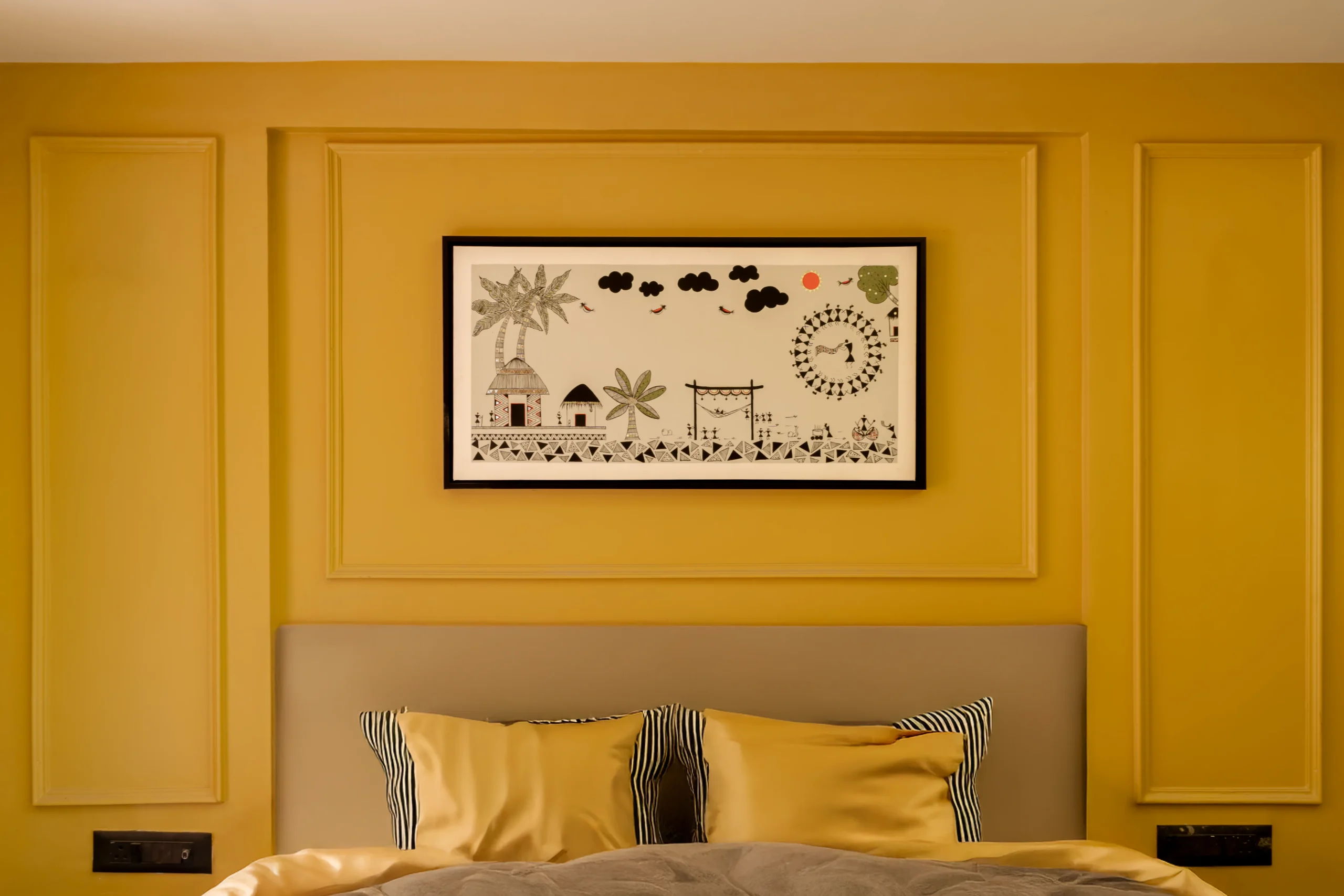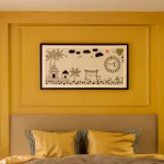 The wide, panoramic format makes it ideal as a statement piece above beds, sofas, or dining areas, especially in warm-toned interiors like this mustard-yellow paneled bedroom — where it creates a perfect balance of tradition and contemporary elegance. Painted with premium acrylics for vibrant, long-lasting color and subtle sheen, it’s durable and easy to maintain.